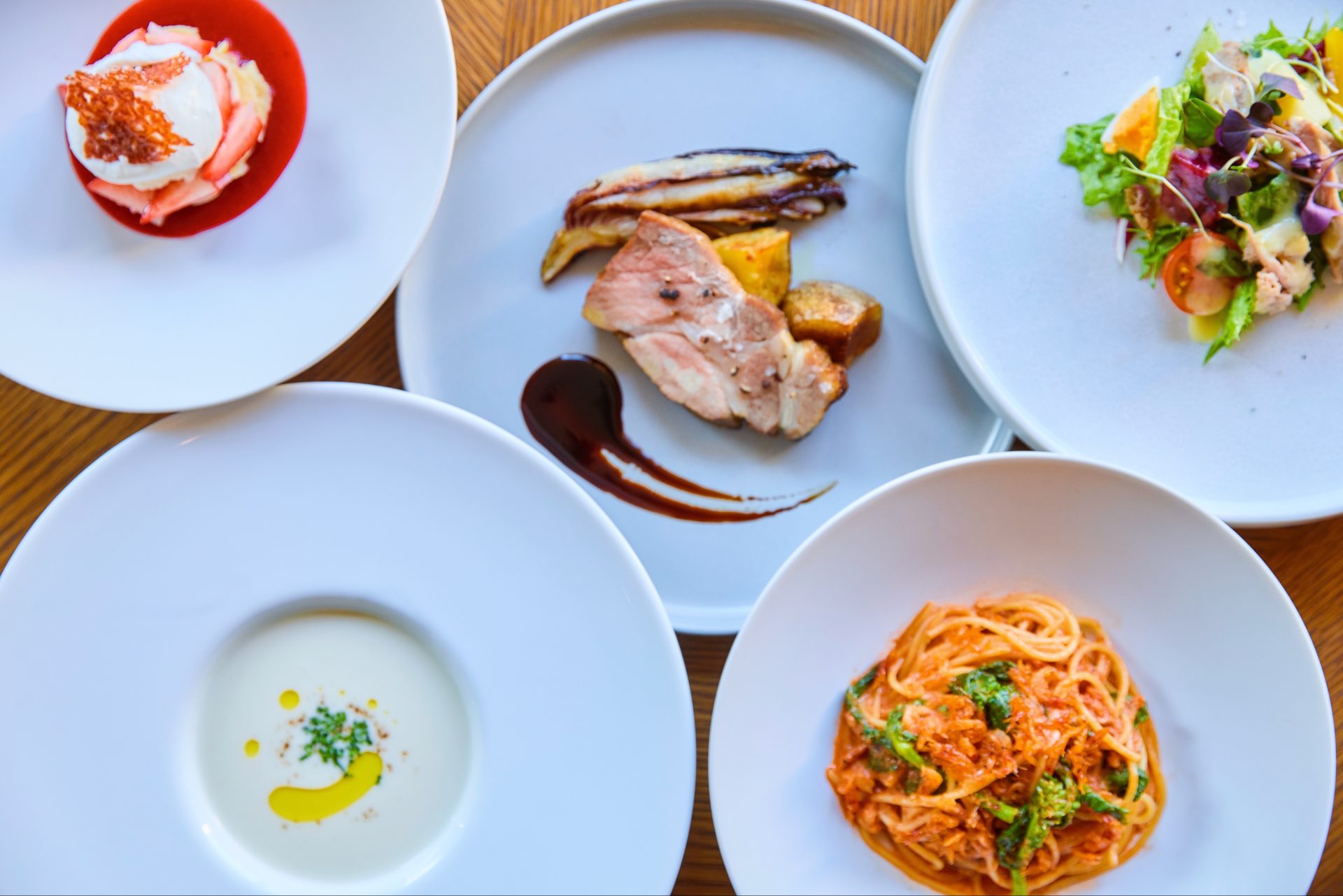 Enjoy a lunch course featuring seasonal local vegetables in an open space filled with natural light, or the popular Chef's Course at dinner time, available by reservation only.